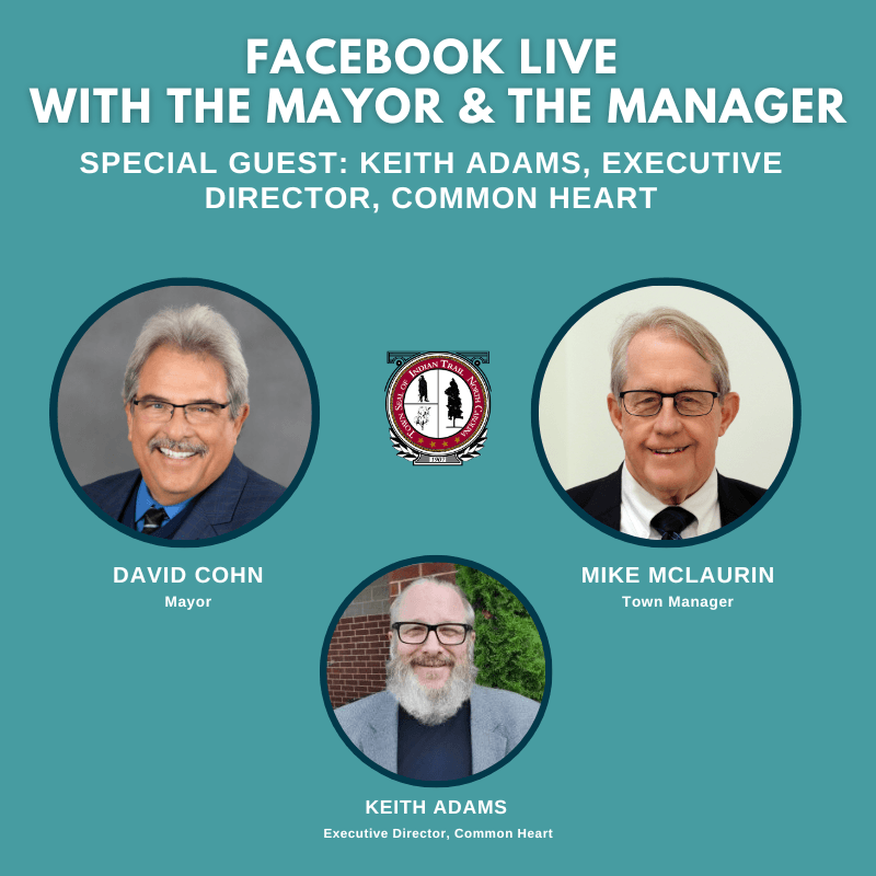 Tune in for the next Facebook Live with the Mayor and the Manager this Thursday, Oct. 24, at 1 p.m. Joining them will be Keith Adams, Executive Director of Common Heart.