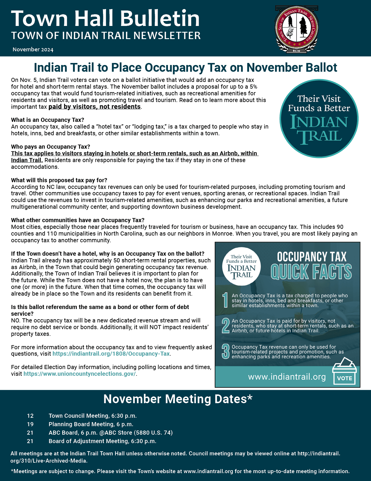 - The Occupancy Tax referendum on the Nov. 5 ballot.