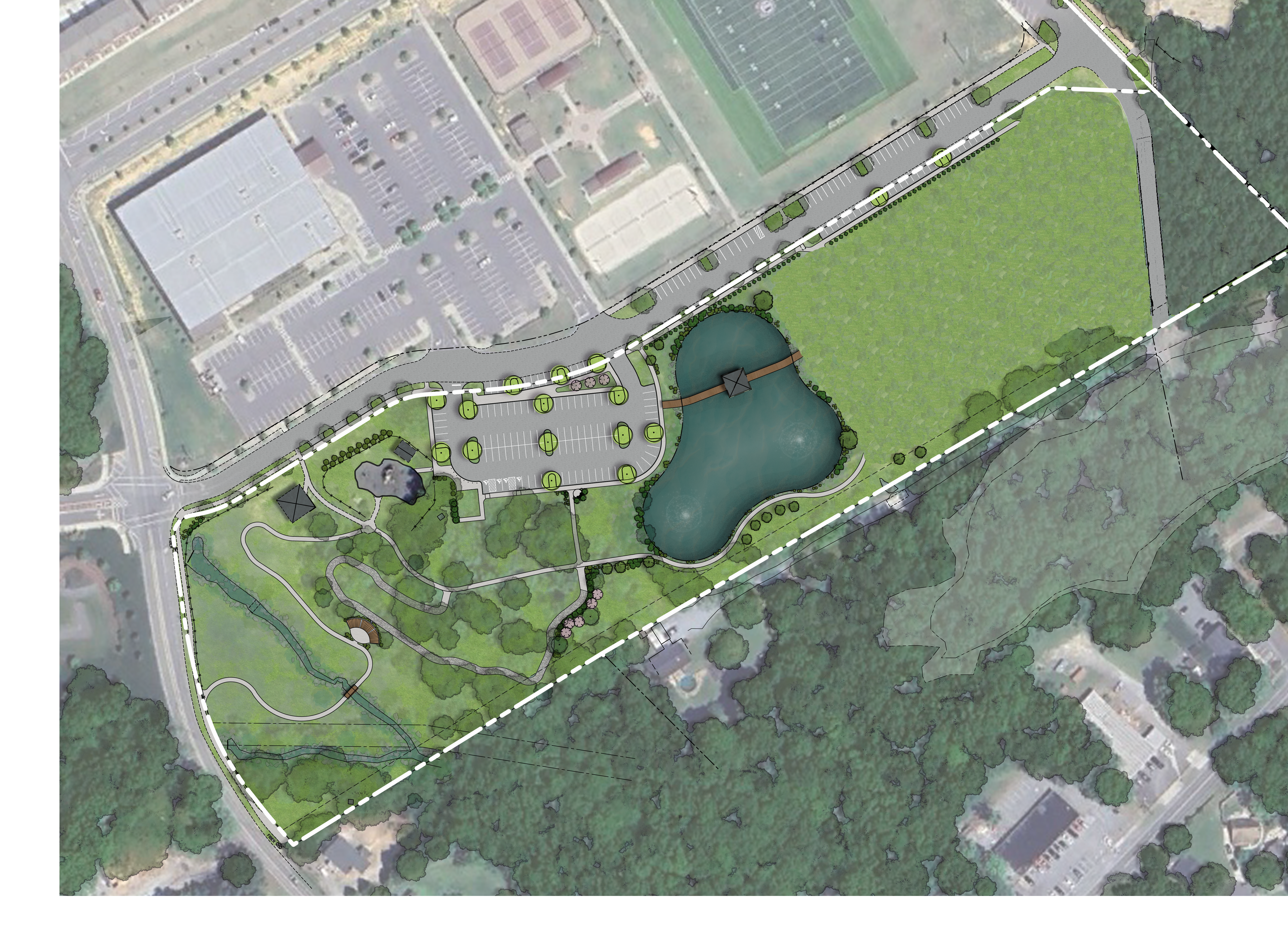 The Chestnut Square Park Phase 2A project will include constructing a parking lot, on-street parking stalls, relocation of the existing stormwater pond, a boardwalk over the pond, and paved walking paths.