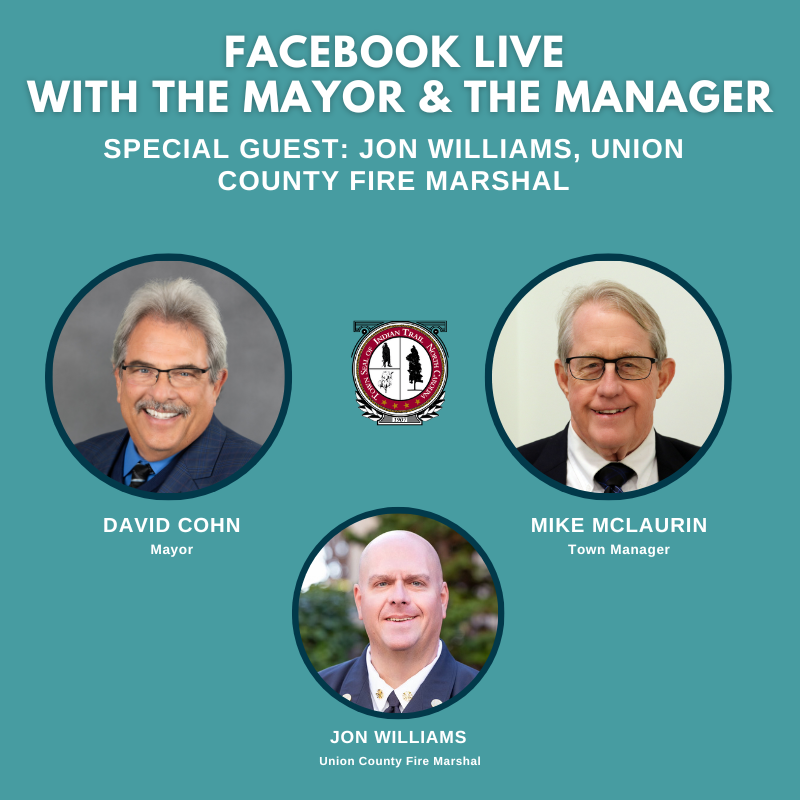 Tune in for the next Facebook Live with the Mayor and the Manager this Thursday, Sept. 19, at 1 p.m. Joining them will be Union County Fire Marshal Jon Williams.